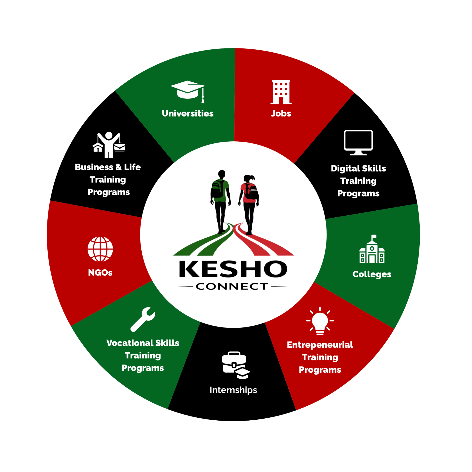 We support youth in Kibera through a range of practical pathways: Educational Institutions, NGOs, Companies, IT Education, Training Institutes, and Self Employment.